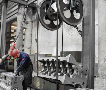 東風鍛造有限公司鑄造一廠清理車間13L缸體產量逐漸上升,交檢瓶頸問題日益突出。特別是13L缸體體積大,重量達325公斤,如果要檢查內部“死角”部位,必須依靠電動葫蘆和吊鉤在滾道上小心翼翼地進行多次翻轉,有質量和安全隱患。