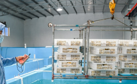 傳統的生蠔養殖、捕撈方式落后又不衛生,經濟效益更差,因此當地成立了人工養蠔支柱產業和工廠,推動規模化養殖模式,擴大養殖面積的同時,也引進了鋼絲繩電動葫蘆等先進省力的吊運設備,將電動葫蘆安裝在工廠廠房的軌道梁上,再把幾十箱生蠔塑料箱統一放到吊運架上后,養殖工人站在遠處就能利用電動葫蘆去吊運起原本放在水面上的生蠔,干凈衛生,又能提高裝運效率。